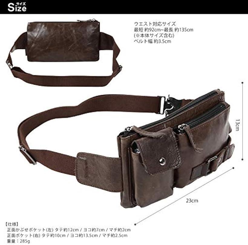 サイズ: 幅23cm 高さ13cm マチ 約4cm 重量 約285gウエスト対応サイズ: 最短 約92cm 最長 約135cm ベルト幅 約3.5cmきめ細かく手触りの良い高級牛革の仕様で、永くお使いいただく事で、革ならではの風合いが出てくる演出をする良質なレザーバッグを採用。